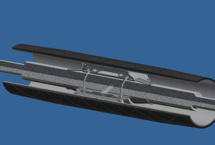 The axis of the RE-TRack guiding roller consists of one piece of round bar. The tube can rotate around this bar parallel to the conveyor belt. In this way, belt slippage can immediately be corrected.